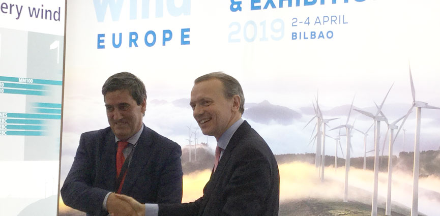 Durante la última jornada de celebración de “WindEurope Conference & Exhibition” en Ámsterdam, que ha reunido a más de 8.000 delegados procedentes de 400 empresas de 50 países, responsables de Bilbao Exhibition Centre han recibido el testigo para acoger la próxima edición de la feria en abril de 2019. La firma del acuerdo de colaboración entre Bilbao Exhibition Centre y la Asociación Europea de Energía Eólica, ha sido plasmada por el Director General de BEC, Xabier Basañez, y Giles Dickson, Consejero Delegado de la mencionada asociación de energía eólica.