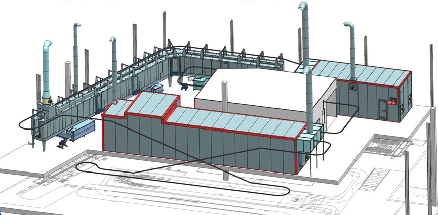 La línea diseñada por Cabycal estará compuesta de una zona de carga/descarga, un túnel de desengrase con 5 etapas, un horno de secado, una cabina de aplicación de pintura en polvo de última generación con cerramiento, un horno de polimerizado y transportador monorraíl. Está previsto que la instalación entre en funcionamiento a finales de 2019.