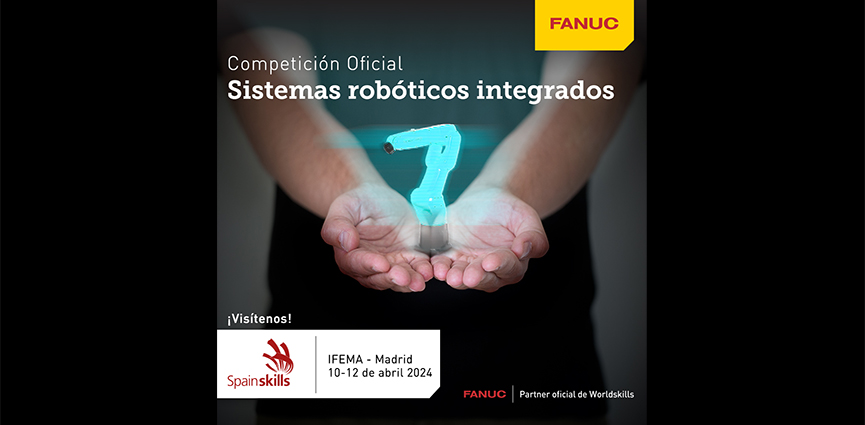 FANUC, multinacional japonesa de automatización industrial, participará en la edición de 2024 de la competición de las profesiones SpainSkills, evento organizado por el Ministerio de Educación y Formación Profesional que se celebrará en Madrid del 10 al 12 de abril de 2024.