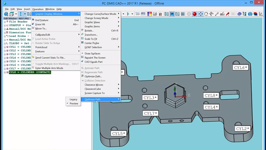 Esta versión de PC-DMIS también visualiza una nueva herramienta Path Optimisation, la cual aprovecha el tratamiento múltiple en diversos PCs centrales y que ayuda a que la optimización de la ruta sea más rápida que nunca. Las herramientas de QuickMeasure se extienden a las operaciones básicas de escaneo y una nueva estrategia de medición para AutoFeature Plane le permite efectuar una selección discreta de puntos. La selección de QuickFeature también está disponible en el Live View de las MMCs ópticas. Las herramientas mejoradas de nubes de puntos incluyen una nueva herramienta Caliper para las comprobaciones de dos puntos que funcionan como un calibre físico, y funciones mejoradas de acercamiento y rotación para escáneres portátiles en los cuales los datos de escaneo ahora fluyen con mayor facilidad en la ventana gráfica. Una nueva opción de dimensión de tamaño permite definir tamaños locales y globales para las normas ASME e ISO y una nueva herramienta para mapeo del sensor de elementos permite que QuickFeature tenga un mejor control para las rutinas de medición multisensor.
