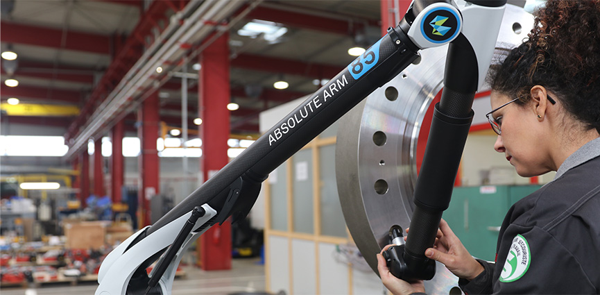 Las principales soluciones de medición portátil de Hexagon son los brazos de medición portátil, gama Absolute Arm, y los sistemas láser tracker, gama Leica Absolute Tracker.