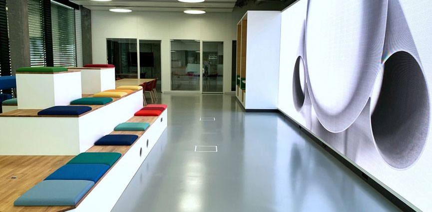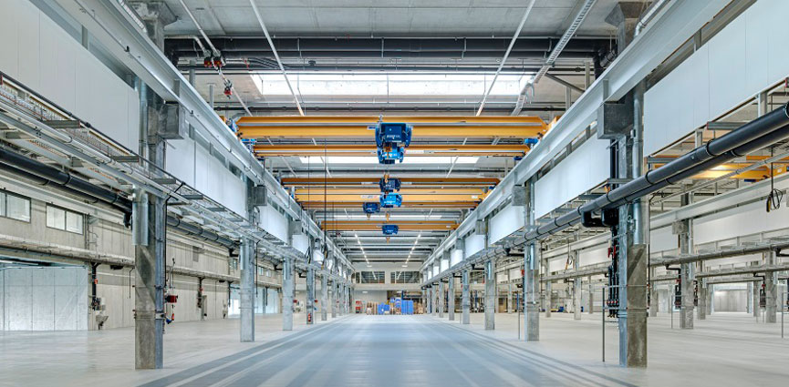 GF invirtió más de 100 millones de francos suizos, es decir, alrededor de 91 millones de euros, en la construcción de una instalación de vanguardia y moderna. La funcionalidad de las salas de proyectos, las salas de pensamiento de diseño, las oficinas de espacios abiertos y las zonas de descanso con sofás se ve reforzada por un generoso uso de la luz natural con el fin de aumentar la comodidad de los empleados. El edificio es energéticamente eficiente y promueve la sostenibilidad. El aislamiento se realiza con lana mineral, el sistema de preenfriamiento permite un uso eficiente y la dispersión del calor en las zonas de producción, y el sistema centralizado de agua de refrigeración asegura un uso óptimo de los recursos. Además, los empleados están motivados a utilizar el transporte público o las bicicletas para desplazarse al trabajo.