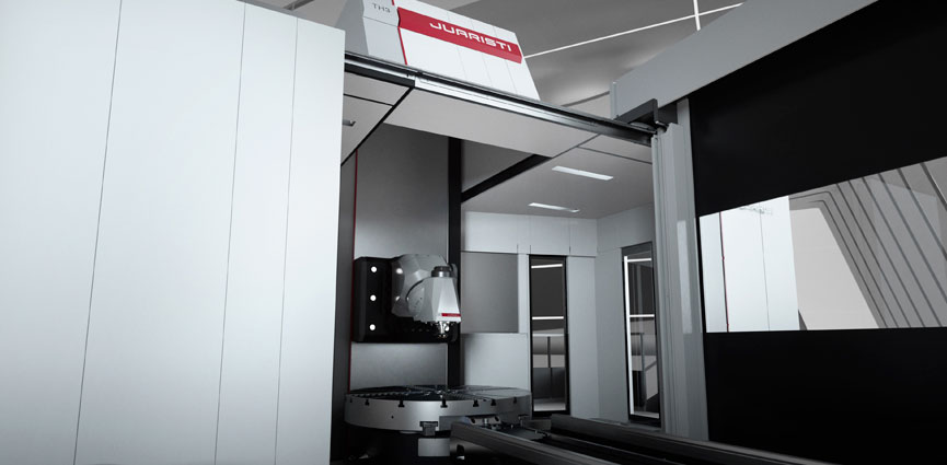 El nuevo centro de mecanizado es un desarrollo de la serie TH, los centros multifunción 5 ejes de JUARISTI, que incorpora en esta ocasión una mesa torno y un cabezal especial con diseño optimizado para operaciones de torneado. El centro incluye un paquete de automatización integral y presenta un diseño completamente renovado para mejorar su ergonomía, alargar su vida útil y optimizar la gestión de viruta y taladrina.