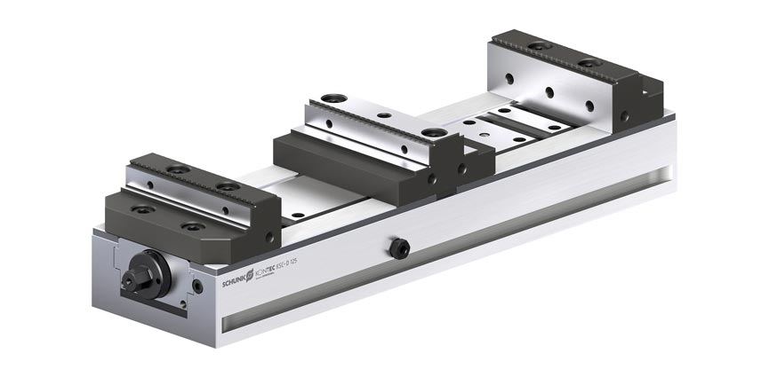 Mediante la cómoda función de tercera mano, se pueden insertar dos piezas de trabajo juntas, fijas, y sujetas juntas de forma segura. Gracias a las roscas trapezoidales se pueden lograr elevadas fuerzas de agarre con el mínimo esfuerzo. Como parte del sistema modular de SCHUNK para lograr una alta eficacia de la sujeción de la pieza de trabajo, estas mordazas ofrecen otras ventajas: los bulones de sujeción del sistema de cambio rápido de palés SCHUNK VERO-S sin placa adaptadora, pueden atornillarse directamente al cuerpo de la base de la mordaza. Estos también pueden equiparse con una amplia variedad de garras superiores estándar. La mordaza de sujeción doble, está disponible en tres tamaños con unos anchos de garra de 80 mm o 125 mm, las fuerzas de sujeción de 25 kN o 40 kN, y carcasas de longitudes de 300 mm, 320 mm, y 740 mm.