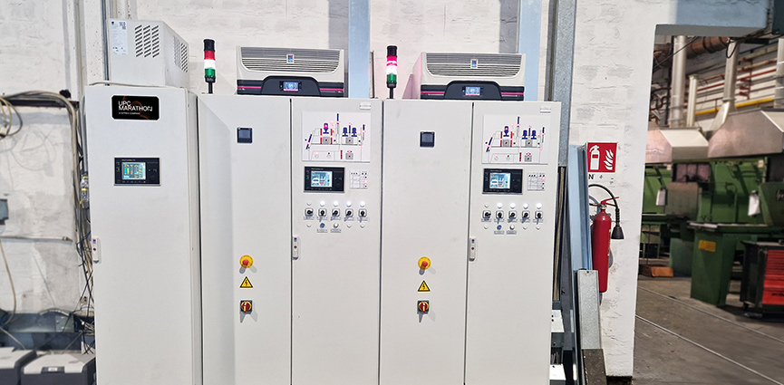 Al reconocer la necesidad de modernización, la empresa se embarcó en una misión de investigación para encontrar el socio adecuado para esta revisión crítica. Después de una cuidadosa consideración, seleccionaron a UPC-Marathon, una empresa de Nitrex, para darle nueva vida a sus antiguos controles de hornos. Esto marcó el inicio de un viaje transformador que vio la asociación con UPC-Marathon redefinir el enfoque de T.T.M. para los controles y la automatización de hornos. El proyecto implicó la instalación de gabinetes de control equipados con los últimos controladores Protherm 470, la integración de los controladores en un sistema SCADA para capacidades avanzadas de monitoreo y control, lo que permitió el análisis de datos en tiempo real y una gestión más eficiente de los procesos de carburación. La supervisión mejorada ayudó a minimizar el tiempo de inactividad y optimizar el rendimiento del horno, lo que aseguró que T.T.M. pudiera satisfacer las demandas de los clientes de manera más efectiva.