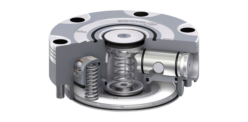 SCHUNK ha vuelto a reforzar las características de rendimiento del VERO-S NSE3 138 en comparación con sus anteriores éxitos de ventas. Una increíble fuerza de tiro de 8.000 N, o de 28.000 N con la función turbo activada, así como una mayor estabilidad dimensional del cuerpo del módulo inciden positivamente sobre la rigidez de las soluciones de sujeción. Además, incluso pueden absorberse con fiabilidad hasta los momentos y las fuerzas transversales de mayor magnitud cuando se sujetan las piezas por la base y son mecanizadas en altura, por ejemplo. En los módulos de alta calidad, un pequeño cono con una repetibilidad inferior a 0,005 mm se encarga de la sujeción y el posicionamiento, lo que garantiza la máxima precisión incluso en las aplicaciones más exigentes. Debido al encaje cónico, los pistones de sujeción también pueden unirse a los módulos excéntricamente, facilitando enormemente este proceso. La sujeción, adaptable a la forma y con bloqueo automático, se lleva a cabo mediante la fuerza de un resorte sin necesidad de suministro externo de energía. Las piezas de trabajo permanecen sujetas con seguridad en caso de una pérdida repentina de presión en el sistema neumático. Una presión del sistema neumático de 6 bares es suficiente para abrir los módulos de sujeción.